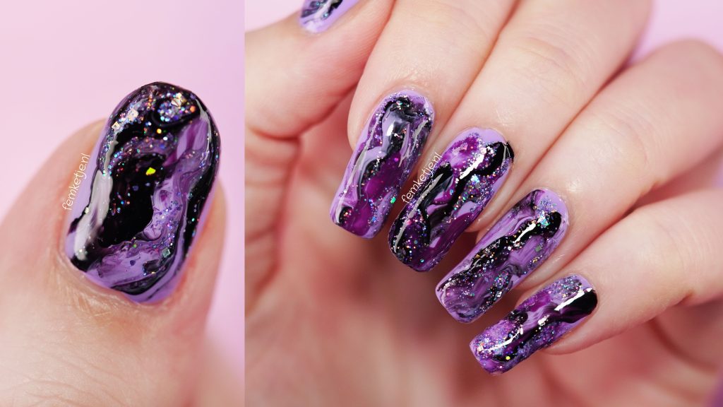 Hi there beautiful people! It’s been a hot minute since I’ve last done a nail art, especially a marble like this. But with Halloween just around the corner I felt like this was a good time to create one with black and purples. And ofcourse some glitter :D