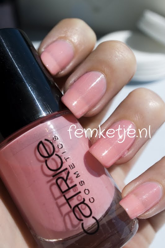 De kleur zelf is lekker zomers, een beetje fel maar wel lief ogend met een fijne shimmer in. Op zich een erg leuk lakje, het enige nadeel wat ik er aan heb kunnen vinden is dat hij niet super goed dekt. Ik had toch zeker wel 4 laagjes nodig om hem totaal dekkend te krijgen. Ik raad daarom ook aan om als je deze lak wilt gebruiken en je hebt haast, om eerst een dekkende witte lak te gebruiken, dan dekt de roze kleur veel sneller en beter.