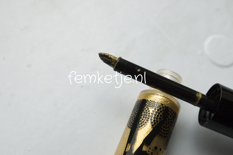 Aan de andere kant van de gloss zit een geelgouden shimmery tint waarvan je de glitters wel echt op je lippen voelt zitten. Deze kant van de gloss droogt trouwens niet echt snel, deze blijft langere tijd gewoon β€˜vloeibaar β€˜ zoals de meeste normale glossjes zijn.