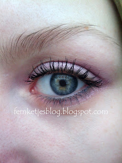 Ik heb daarna een Essence kajal pencil gebruikt om de onderste wimpers en waterlijn te kleuren. (Als je pencil hard is kun je deze wat verwarmen met een aansteker, dan komt de kleur ook makkelijker in je wimpers wil je het daar voor gebruiken.) Ik had gekozen voor een ietwat donkere paarse kleur met een fijne shimmer om het uiteindelijke resultaat iets meer kleurverschil te geven. *anders wordt het geheel super roze*