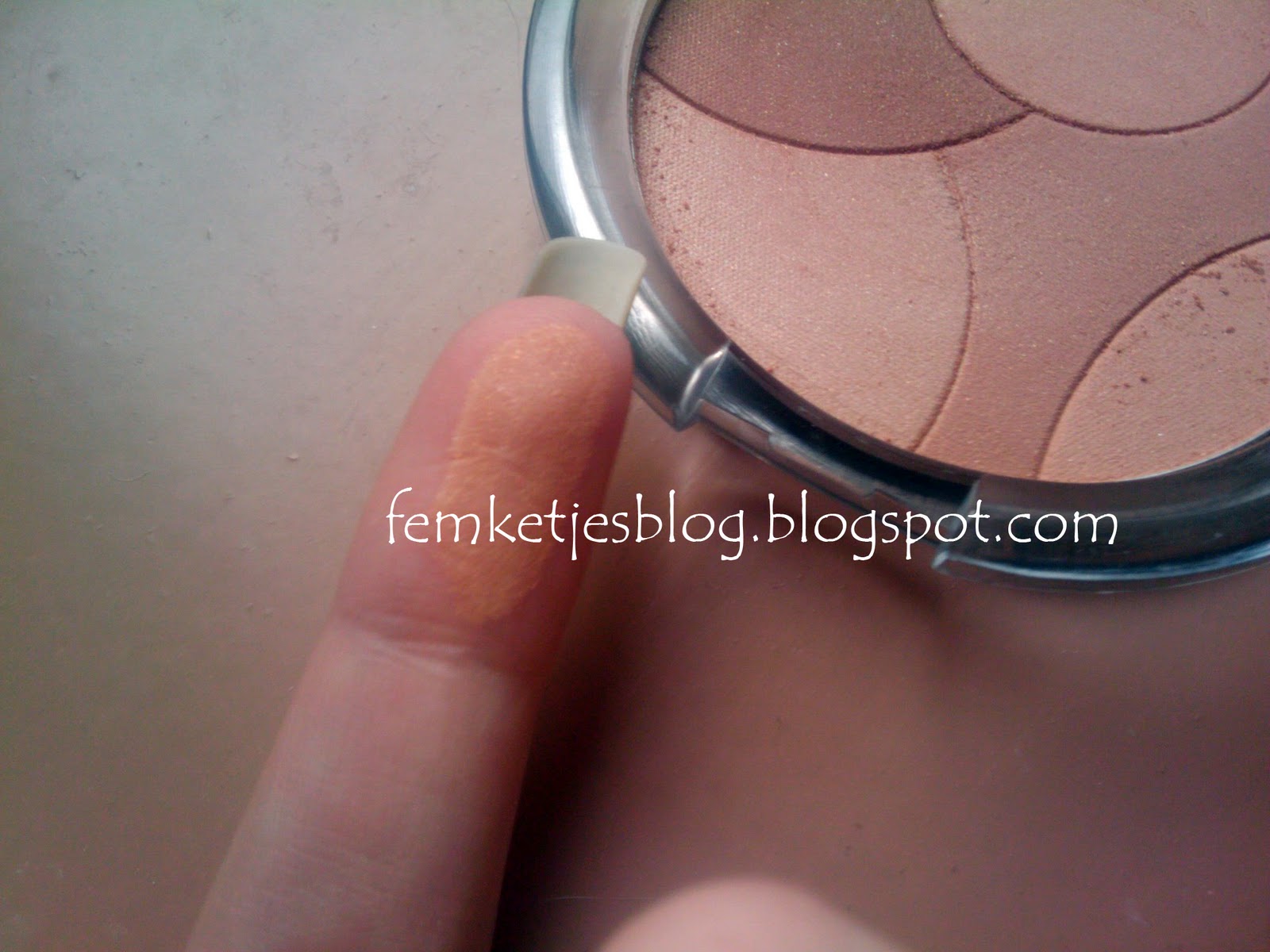 In de poeder zelf zitten mooie brons/koperkleurige glittertjes die niet al te chunky zijn maar die voor sommige gelegenheden misschien iets te veel van het goede kunnen zijn. Wel zijn de kleuren goed gepigmenteerd.