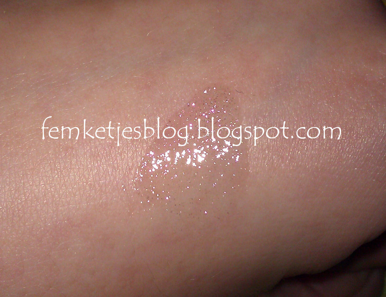 – De kleur is echt to die for; licht roze met allerlei kleine roze en zilvere shimmers in, echt een bubble gum kleurtje dus!