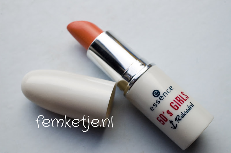 Als eerste de peachy lipstick van Essence uit de 50s Girls Reloaded LE. Echt een favoriet van me als het zonnetje buiten schijnt. Ik word er gewoon echt vrolijk van! Goede pigmentatie en een klein prijsje, me likey!