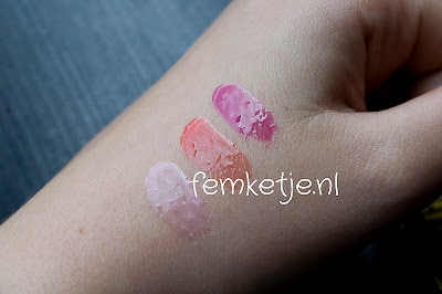 Het is alweer een maand of twee geleden dat deze LE of TE (wat het dan ook was) in de schappen lag en beetje bij beetje kocht ik elke keer weer wat van de collectie. Zo ook deze drie glossjes die ik ook letterlijk in drie keer gekocht heb.