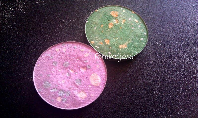 De lila tint bevat een marble van blauw/paarse en lichtroze kleuren en geeft een mooie metallic achtige finish. De groene tint bevat een goude marble en geeft ook een mooie ietwat metallic finish. De kleuren zou ik zelf wel met een basis gebruiken om de kleuren wat intenser te krijgen, anders zijn ze aardig flets maar hebben ze nog wel een mooie finish.