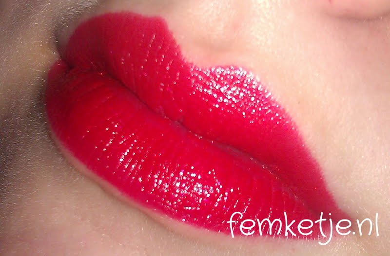 De kleur is, zoals ik al zei, erg mooi rood (bijna schreeuwerig rood) en is zeker wel goed gepigmenteerd en lekker creamy. De lipstick bevat hele kleine shimmer waar je niet erg veel van terugziet op je lippen zelf. Wel heeft de stick een aparte geur die gelukkig niet erg storend is.