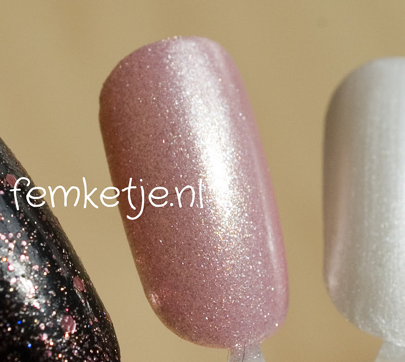Het lakje zelf is een erg sheer maar mooi lichtroze lakje met een berg shimmer in. Het lakje is erg sheer, zeker de eerste paar laagjes maar na een laagje of 4/5 heb je de lak aardig dekkend gekregen. Het is een perfect lakje als bijvoorbeeld basiskleur voor nail art of om een normaal wit of roze lakje net iets speciaals te geven.