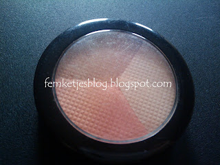 Hetzelfde geld voor de blauwe kleur, alleen is deze ietsjes minder gepigmenteerd maar wel een stuk feller van kleur en brengt wel even egaal aan vergeleken bij de witte kleur. De geur van de oogschaduw is normaal, een typisch oogschaduw-geurtje die niet storend is.
