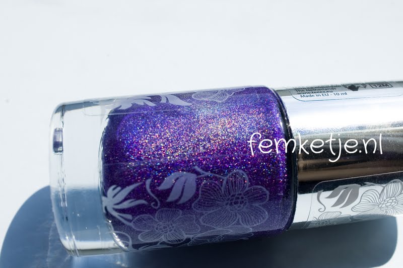 Als tweede de paarse lak, 01 outta control. Ook deze heeft een mooi holografisch effect en staat erg netjes als je bijvoorbeeld een bruiloft of ander soort feest hebt.