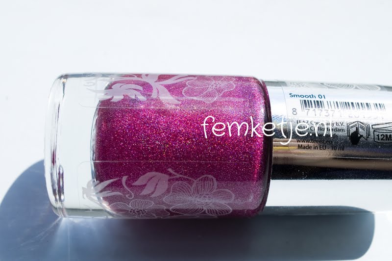 Als laatste de roze lak, een mooie aparte roze tint die 01 smooth heet. Uiteraard heeft deze ook de mooie holografische finish in het zonlicht maar jammergenoeg was de zon ver te zoeken toen ik de swatchfoto’s maakte.